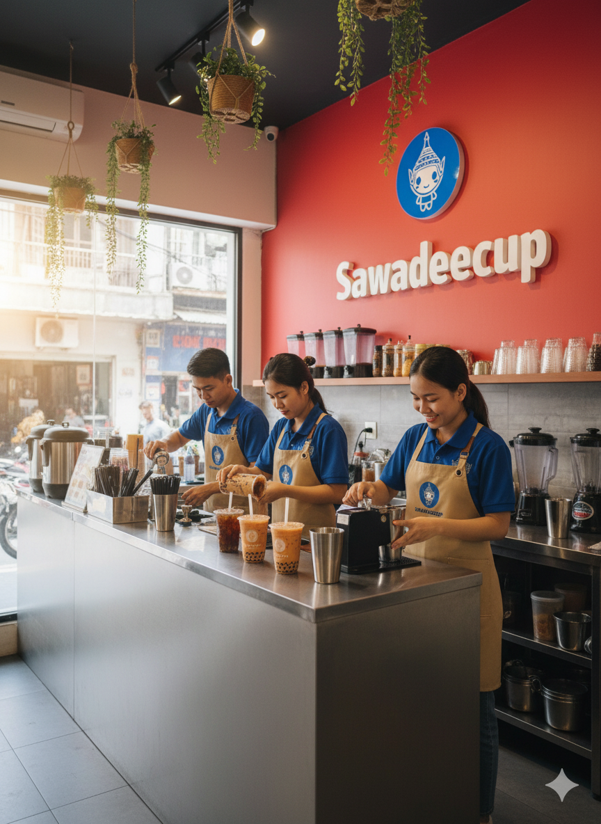 Có rất nhiều thương hiệu trà sữa, nhưng chỉ có một nơi mang đến hương vị Thái Lan chính hiệu, gây nghiện. Chúng tôi đã hoàn thiện mô hình kinh doanh để bạn có thể tập trung vào việc chia sẻ trải nghiệm Sawadeecup đích thực và xây dựng một doanh nghiệp sinh lời