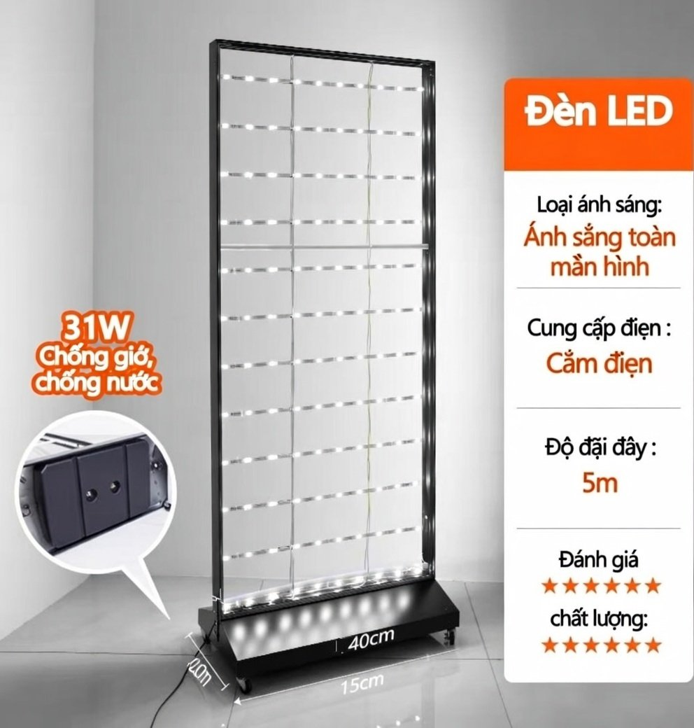 Khung Đèn LED Toàn Màn Hình Đứng Di Động Chống Nước Chống Gió 31W – Cắm Điện 5m Dây + Bánh Xe + Hình In Sẵn | Kích Thước 80x160cm & Tùy Chỉnh